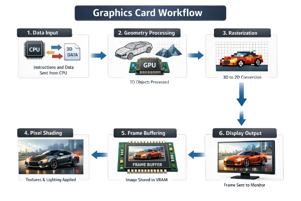 Even though everything happens incredibly fast, the graphics card follows a clear process to create each image you see on your screen.
